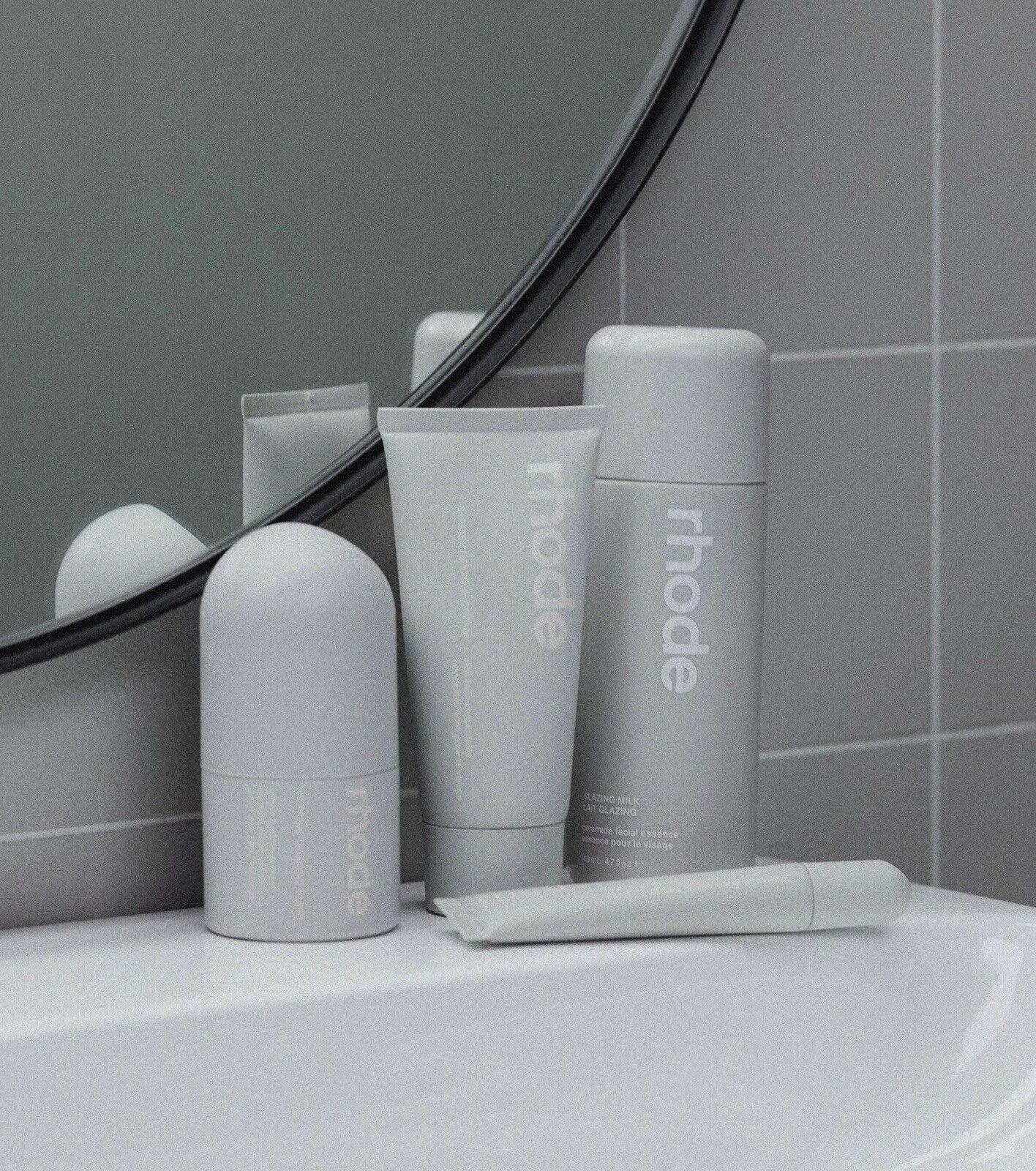 articleSummary: This article discusses the Rhode skincare line's aim for a 'glazed' finish and mentions key products like the Peptide Glazing Fluid and Barrier Restore Cream.