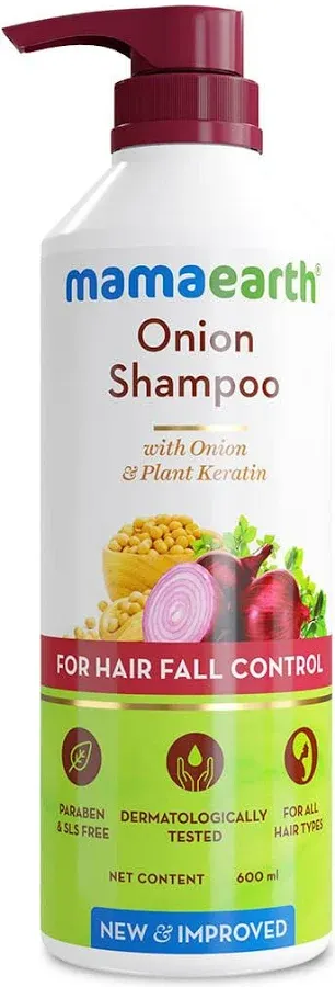 title: Mamaearth Onion Shampoo for Hair Growth and Hair Fall Control with Onion and Plant Keratin | Reduces Hair Fall | Strengthens & Smoothens Hair | For