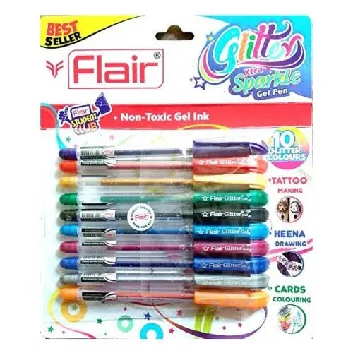 items 4: content: This is my first online purchasing of stationery item, I loved these Flair multi color glitter extra sparkle gel pens. Best gel pen for art and craft.