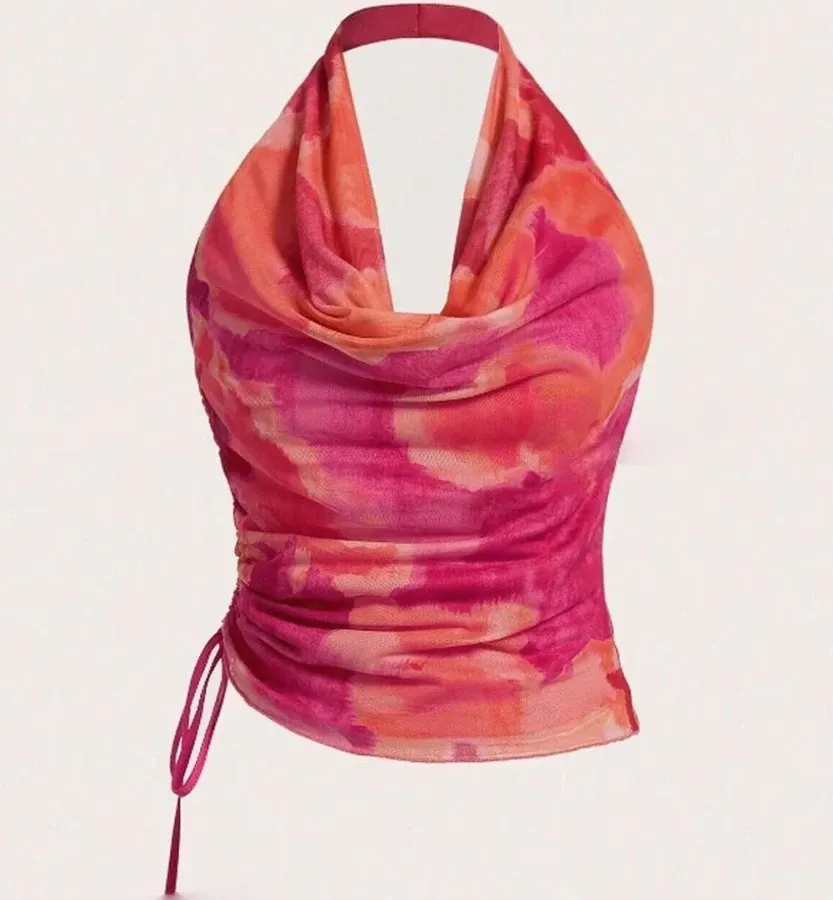 snippets: The Tie Dye Print Halter Neck Top is a trendy and adaptable garment that offers both style and comfort., Customers have generally expressed satisfaction with the Tie Dye Print Halter Neck Top, noting its stylish design, comfortable fit, and versatility.