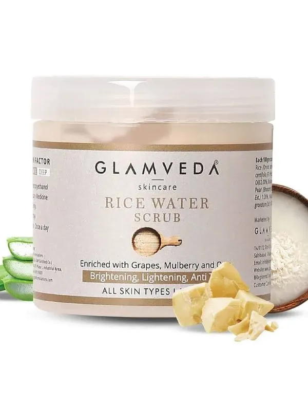 detailedReviews: detailedReviews 1: content: I recently tried the Glamveda Rice Water Brightening Face Scrub, and it has been a pleasant experience. The texture is creamy and smooth, making it gentle on the skin while effectively exfoliating. It removes dirt and dead skin cells without feeling too harsh, leaving my face feeling soft and refreshed.
