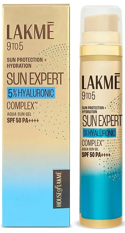 title: Lakme 9 To 5 Sun Expert 5% Hyaluronic Complex SPF 50 PA+++ Aqua Sun Gel 56 g