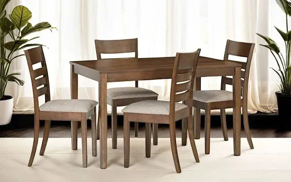 title: Royaloak Penang Malaysian Wooden 4 Seater Dining Table Set with Chairs |Solid Mindy Wood Veneer Finish | Solid Rubber Wood Legs | 70mm Apron| Comfort Back Support | Cushioned Seating